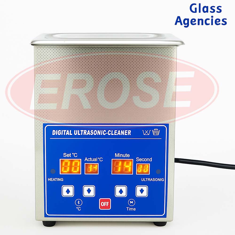 The Erose Digital Ultrasonic Cleaner from Glass Agencies delivers efficient, non-invasive cleaning using advanced ultrasonic waves for precision instruments.