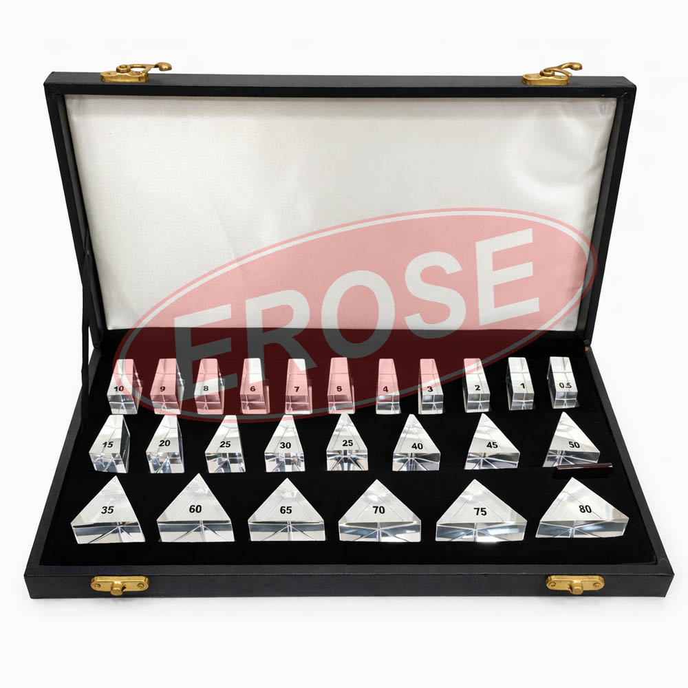Glass Agencies are a sure and authorized supplier of a top quality ophthalmic instrument, contributing to the free Prism Bar Establish Big 25 Pc, a professional instrument necessary to accurately assess the visual acuity of the eyesight and eyewitness analysis. Ophthalmologists, optometrists, orthoptists, and eye care specialists are very familiar with the current location to examine the eye structure, binocular vision, and phoria measurement. The appointment includes 25 individual prism parallel bars together with a change prism diopter which provides a wide field of view and a precise and reliable measurement of eye movements. Individual prisms shall be manufactured from premium optical grade elements to guarantee precise refractive properties, durability, and constant performance in spite of frequent clinical use. The prisms are fitted with a robust frame designed for simple handling and interpolation so that they can be used smoothly throughout the examination. The large structure of the cradle enhances visibility and ease of measurement, making it suitable for both adults and children. We stand for quality, precision, and user friendliness near Glass Agencies. In order to establish transnational ophthalmic standards and ensure reliable and reproducible results, each prism barroom must be carefully calibrated and tested. The place is ideally suited to hospitals, eye clinics, orthopaedic centers, and educational institutions and provides a wide range of solutions for regular eye examinations, diagnostic evaluations, and perception evaluation. They allow clinicians to select and implement the required prism smoothly, improving the working order and persevering support. The Loose Prism Bar provides a large 25 PC backs eye thoughtfulness professional in providing precise diagnosis, proficient treatment plan, and superior patient care by providing on target, reliable, and professional tools. Glass Agencies, with a decade of expertise in ophthalmic instruments, is moving forward to provide innovative, robust, and reliable solutions for all eye care professionals worldwide. The Glass agencies have accuracy, reliability, and faith in all Prism measurements.